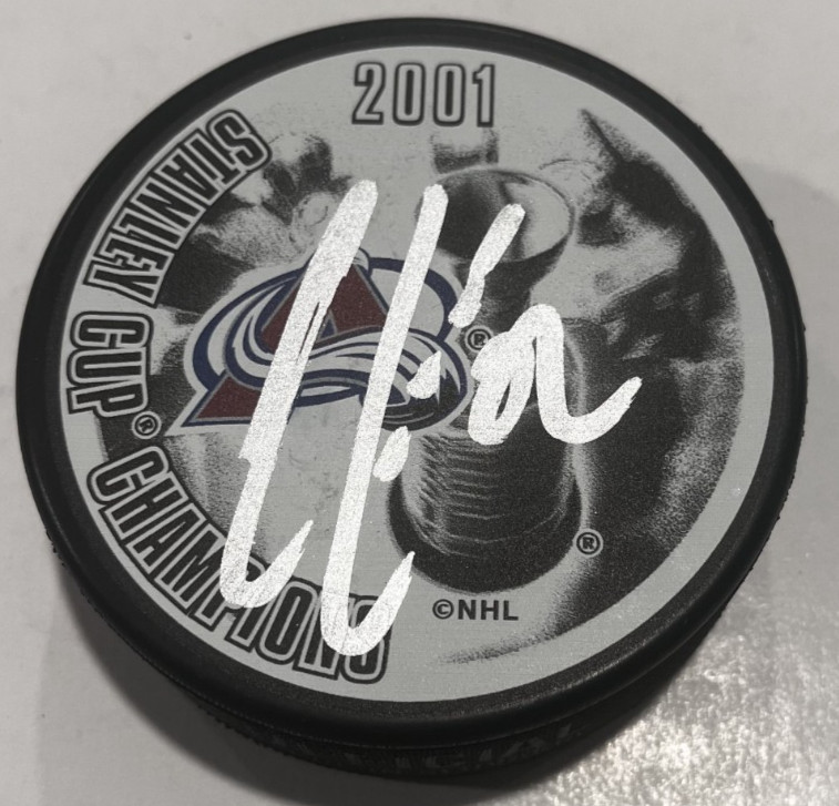 ADAM FOOTE SIGNED COLORADO AVALANCHE 2001 STANLEY CUP HOCKEY PUCK W/ CASE COA COLLECTIBLE MEMORABILIA