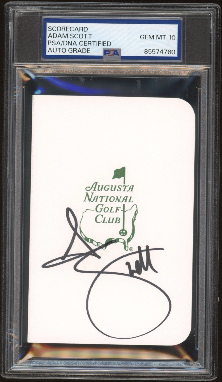 ADAM SCOTT SIGNED AUGUSTA MASTERS SCORECARD PSA GEM MT 10 AUTO 2013 CHAMPION COLLECTIBLE MEMORABILIA