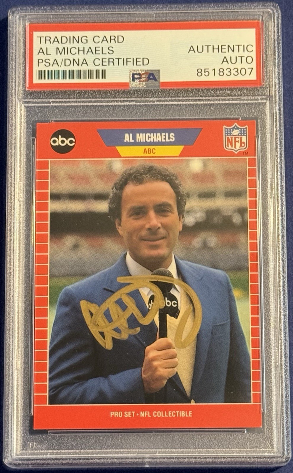 AL MICHAELS SIGNED AUTO 1989 PRO SET ROOKIE CARD PSA/DNA SLABBED AMAZON COLLECTIBLE MEMORABILIA