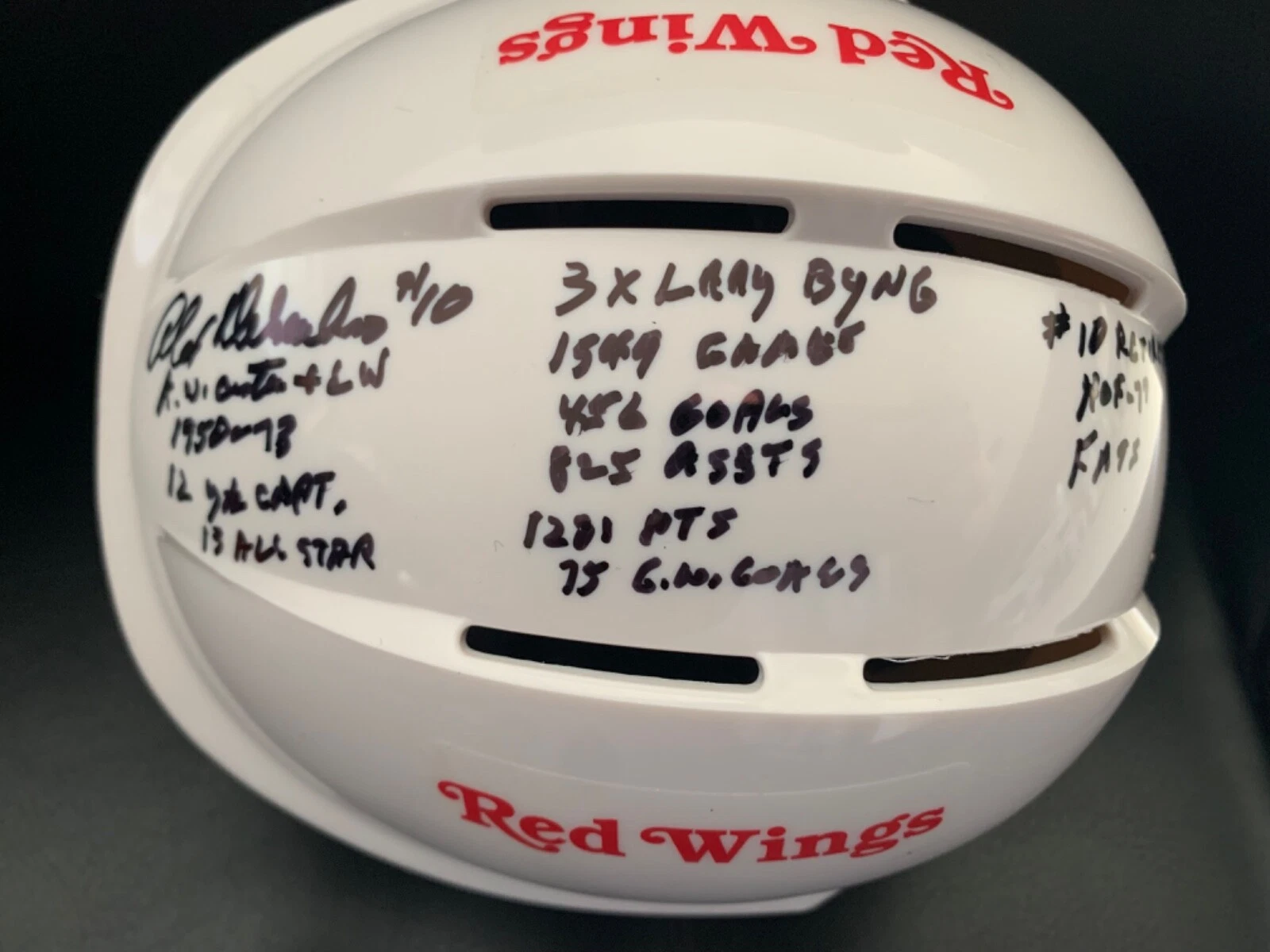 ALEX DELVECCHIO HAND SIGNED RED WINGS HOCKEY MINI-HELMET+JSA 12 INSCRIPTIONS COLLECTIBLE MEMORABILIA
