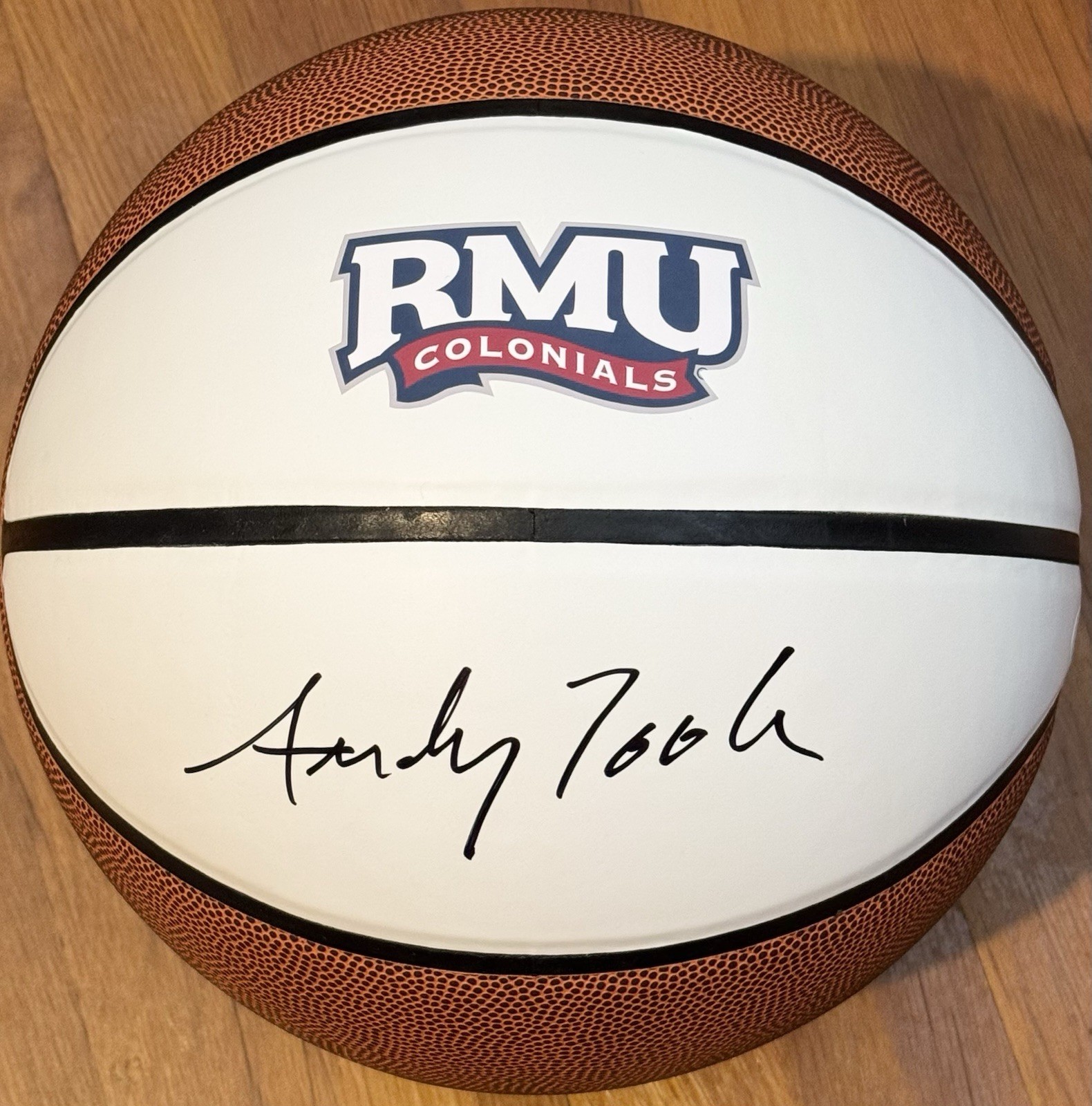 ANDREW TOOLE SIGNED AUTOGRAPHED ROBERT MORRIS COLONIALS LOGO BASKETBALL JSA COA COLLECTIBLE MEMORABILIA