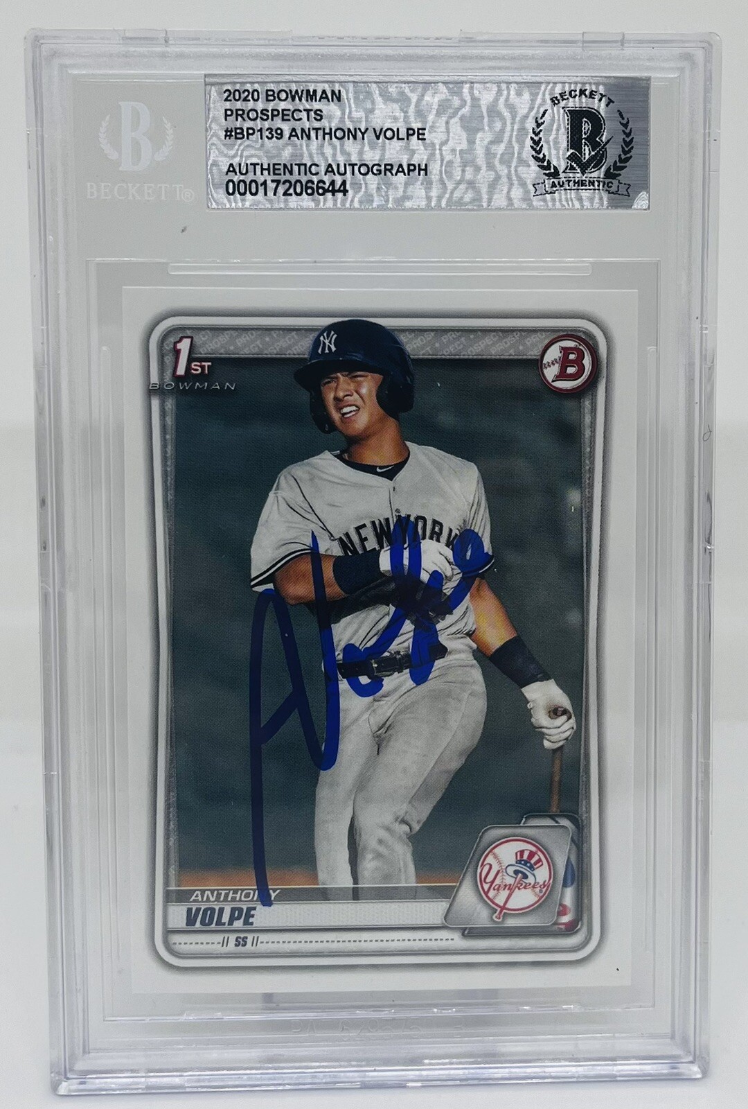 ANTHONY VOLPE SIGNED 2020 BOWMAN PROSPECTS BASEBALL ROOKIE CARD BECKETT BAS AUTO COLLECTIBLE MEMORABILIA