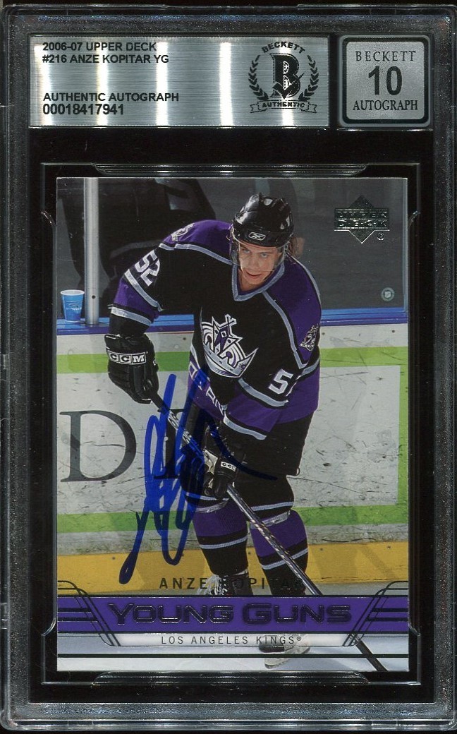ANZE KOPITAR SIGNED AUTO 2006 UD YOUNG GUNS ROOKIE CARD RC YG BECKETT 10 (BAS) COLLECTIBLE MEMORABILIA