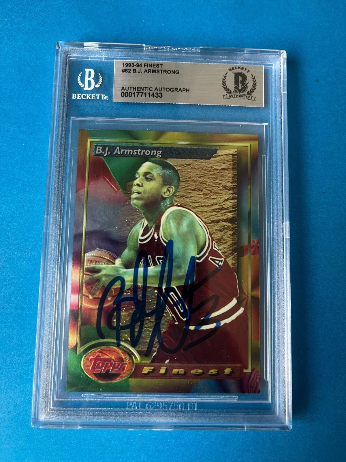 B.J. ARMSTRONG BULLS 1993-94 TOPPS FINEST CARD SIGNED AUTO BECKETT BAS SLABBED COLLECTIBLE MEMORABILIA