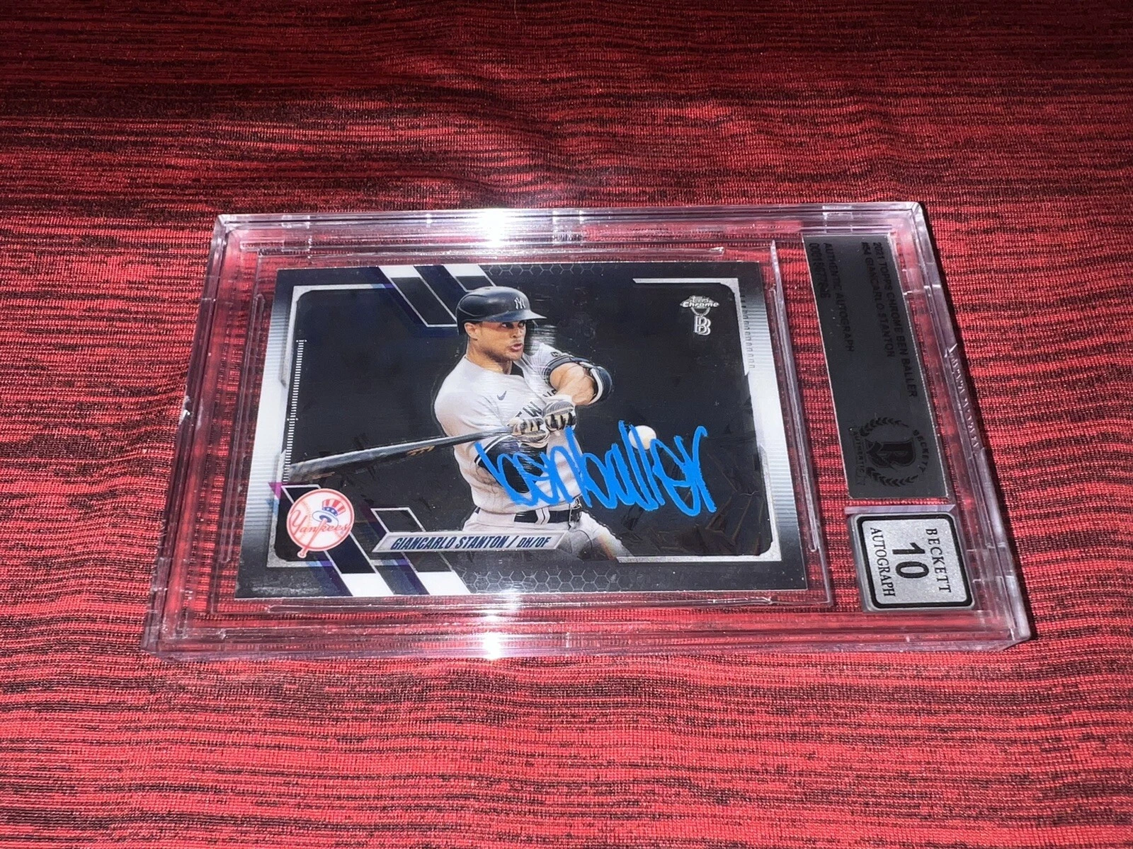 BEN BALLER SIGNED 2021 TOPPS CHROME GIANCARLO STANTON TRADING CARD BECKETT COLLECTIBLE MEMORABILIA