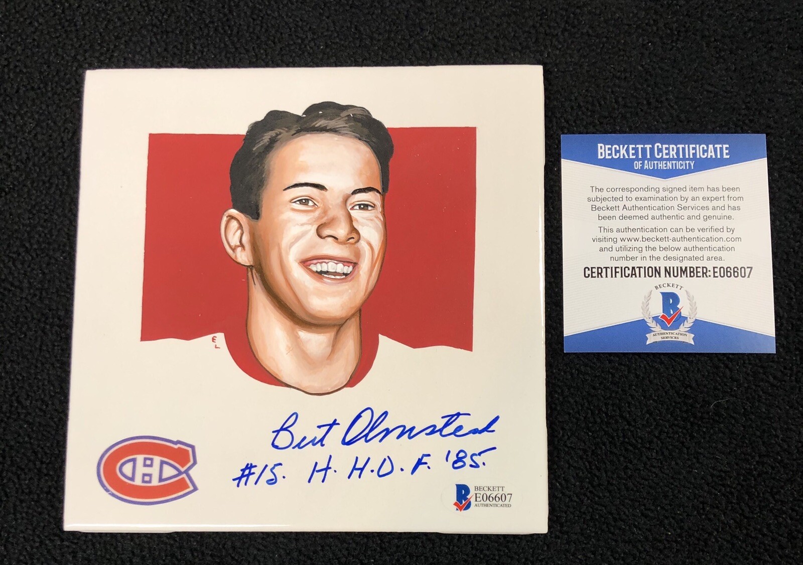 BERT OLMSTEAD SIGNED MONTREAL CANADIENS HAND PAINTED TILE BECKETT AUTHENTICATED COLLECTIBLE MEMORABILIA
