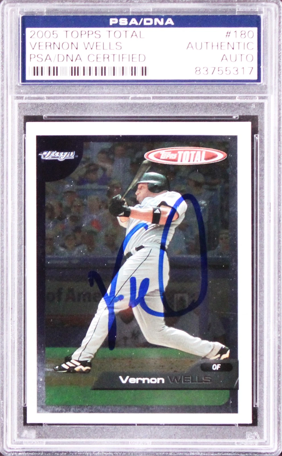 BLUE JAYS VERNON WELLS AUTHENTIC SIGNED 2005 TOPPS TOTAL #180 CARD PSA/DNA SLAB COLLECTIBLE MEMORABILIA