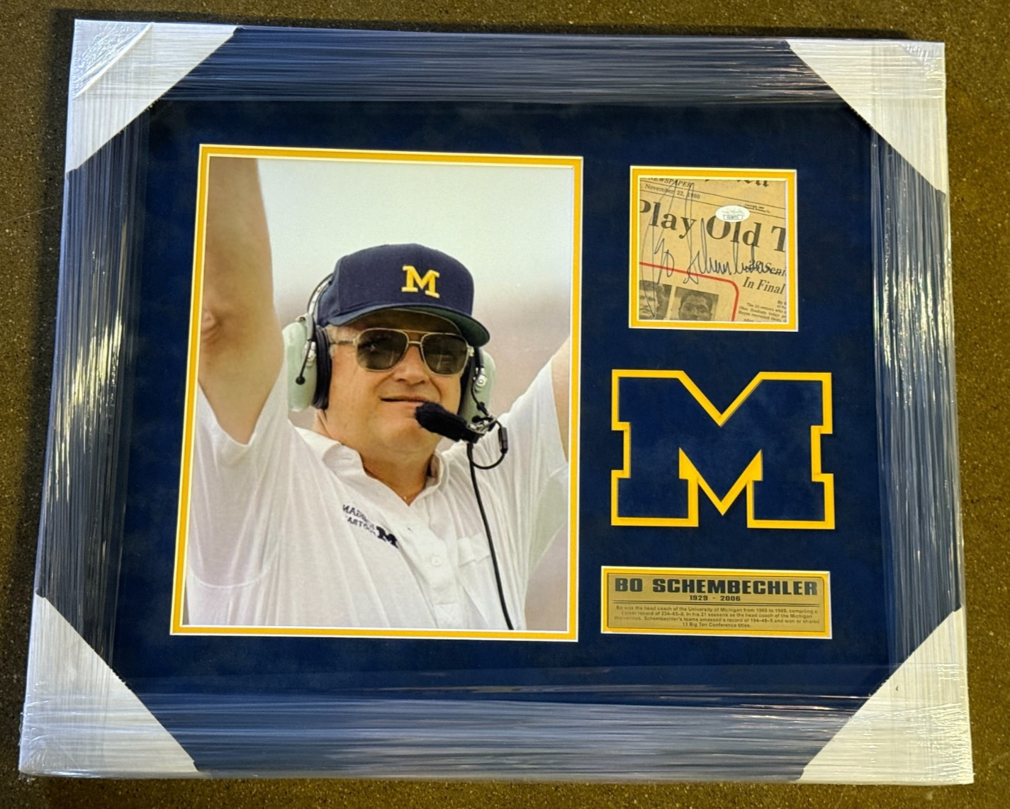 BO SCHEMBECHLER SIGNED MICHIGAN WOLVERINES FRAMED PHOTO DISPLAY JSA COA COLLECTIBLE MEMORABILIA