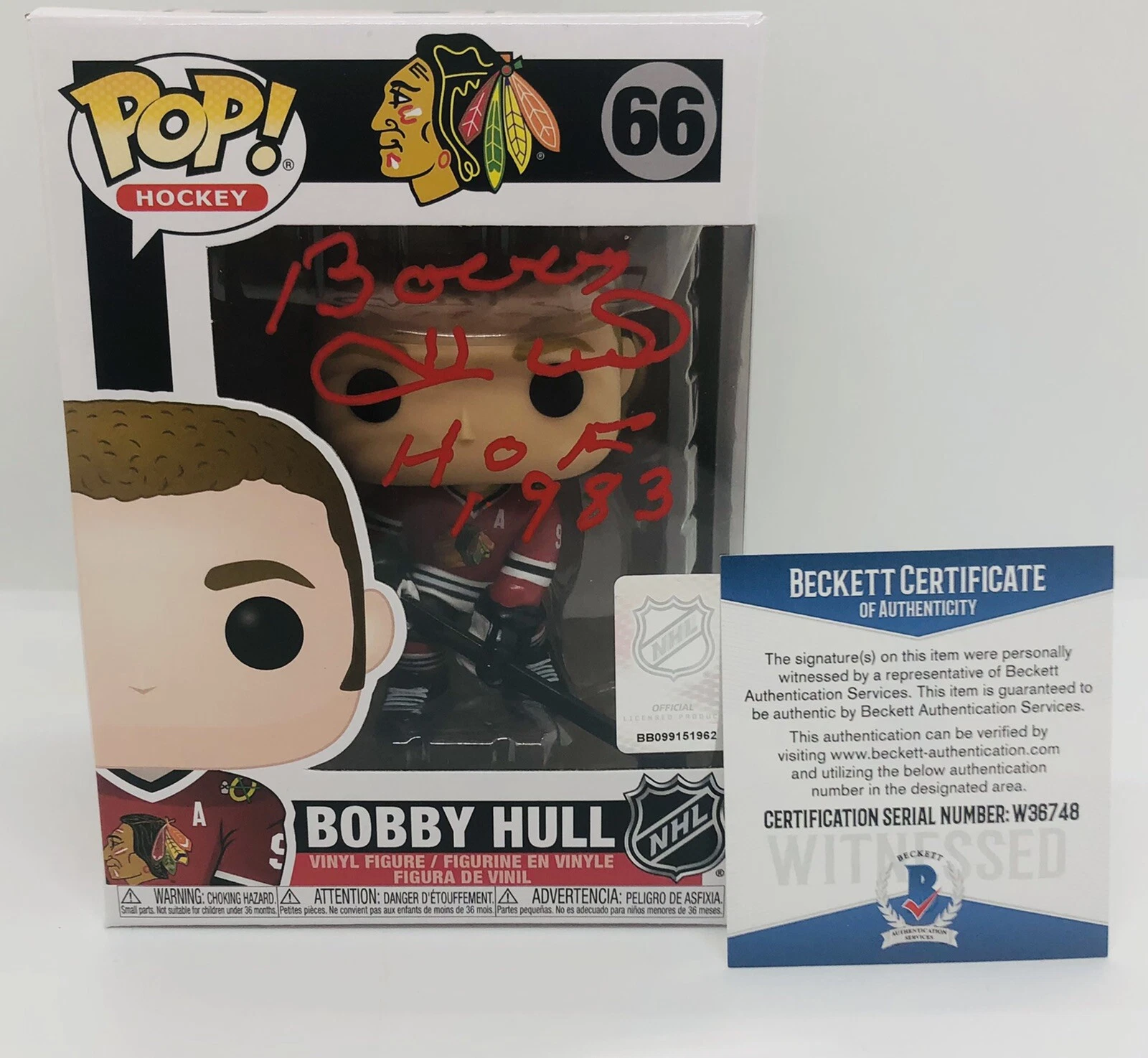 BOBBY HULL SIGNED POP FUNKO FIGURE NHL LEGEND CHICAGO BLACKHAWKS PROOF BAS COA COLLECTIBLE MEMORABILIA