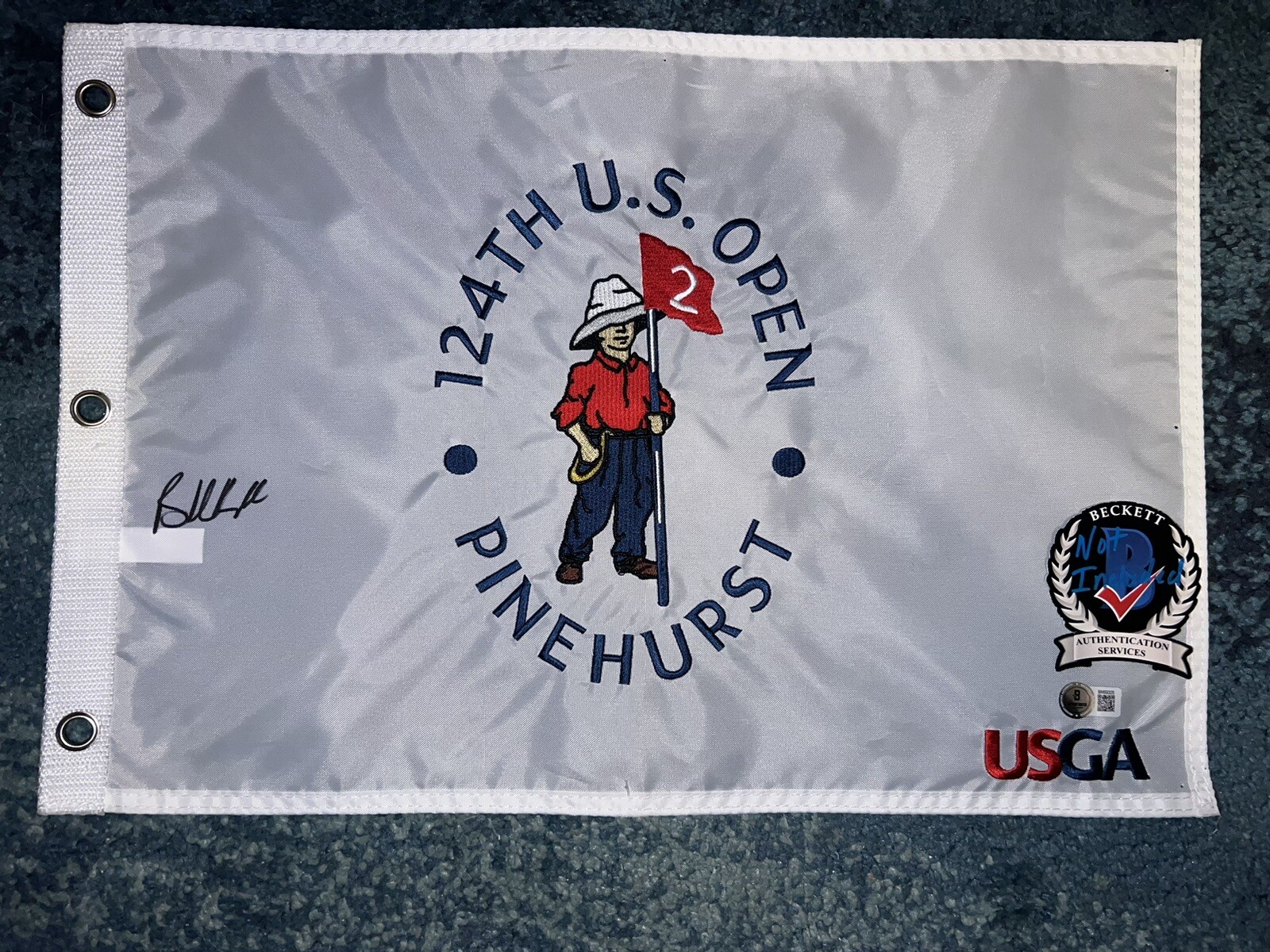 BROOKS KOEPKA SIGNED OFFICIAL 2024 US OPEN CHAMPIONSHIP FLAG PINEHURST BAS #3 COLLECTIBLE MEMORABILIA