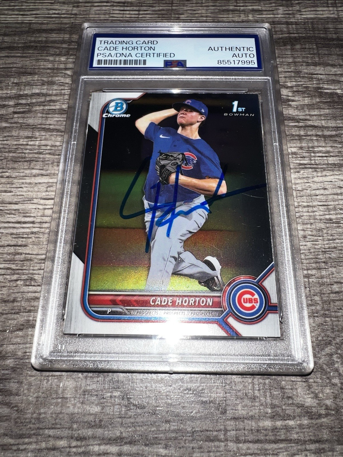 CADE HORTON SIGNED 2022 1ST BOWMAN CHROME TRADING CARD CHICAGO CUBS PSA/DNA #2 COLLECTIBLE MEMORABILIA