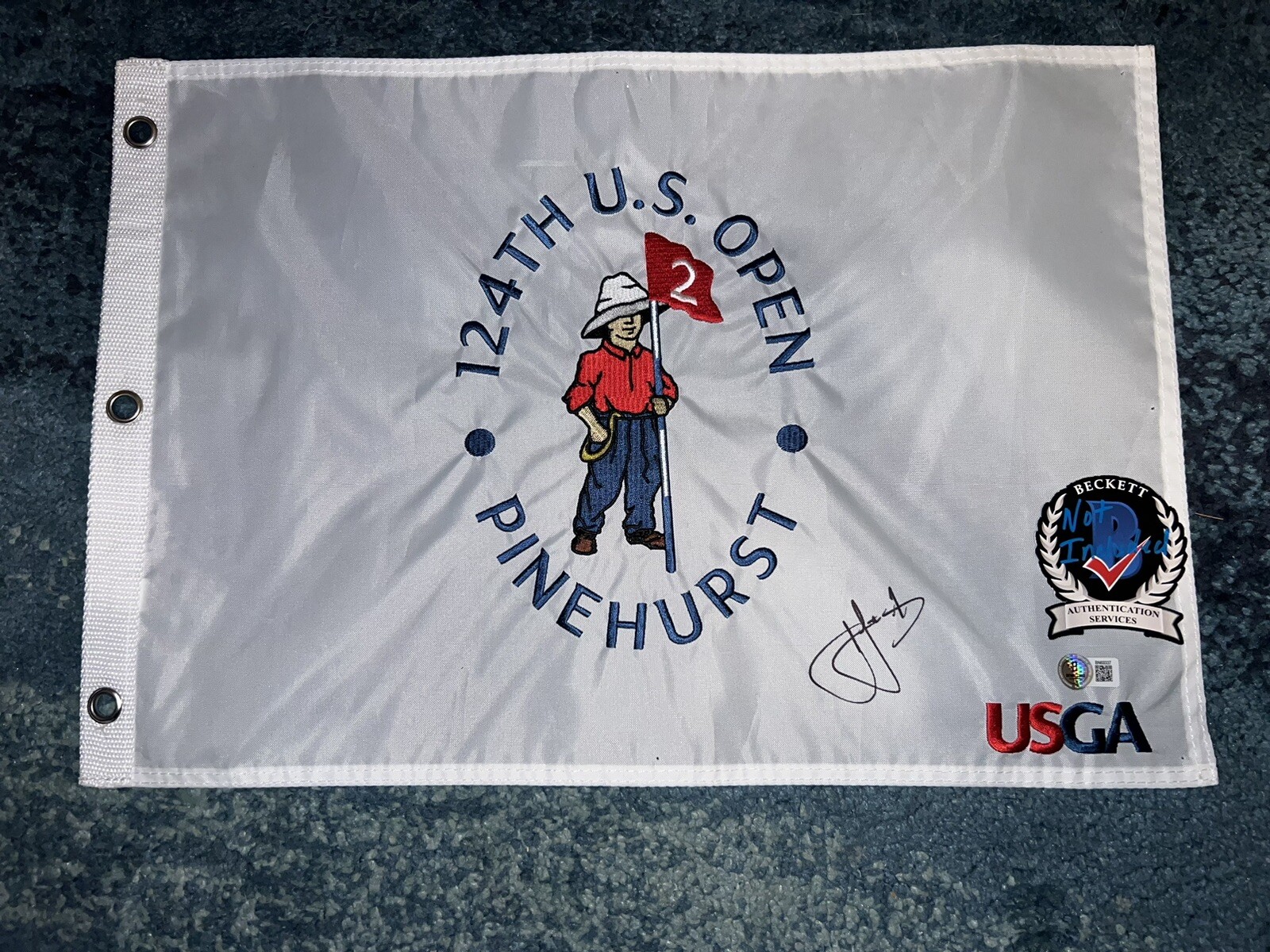 CAM CAMERON SMITH SIGNED OFFICIAL 2024 US OPEN CHAMPIONSHIP FLAG PINEHURST BAS 4 COLLECTIBLE MEMORABILIA