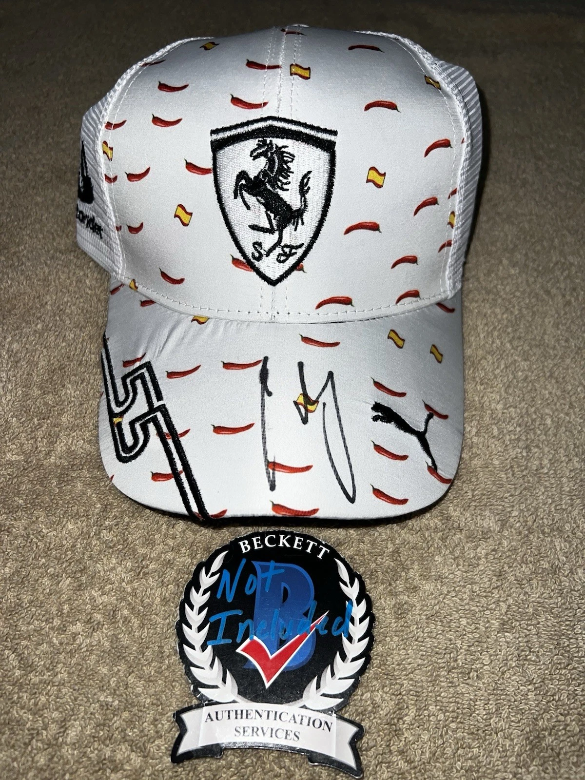 CARLOS SAINZ SIGNED FERRARI RACING HAT #55 F1 SPAIN GP CHILI PEPPER CAP BECKETT COLLECTIBLE MEMORABILIA
