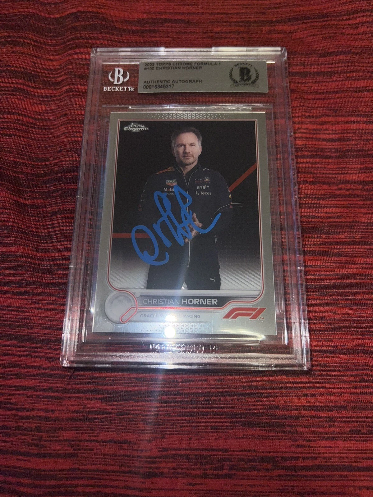 CHRISTIAN HORNER SIGNED 2022 TOPPS CHROME CARD RED BULL PRINCIPLE BECKETT SLAB COLLECTIBLE MEMORABILIA