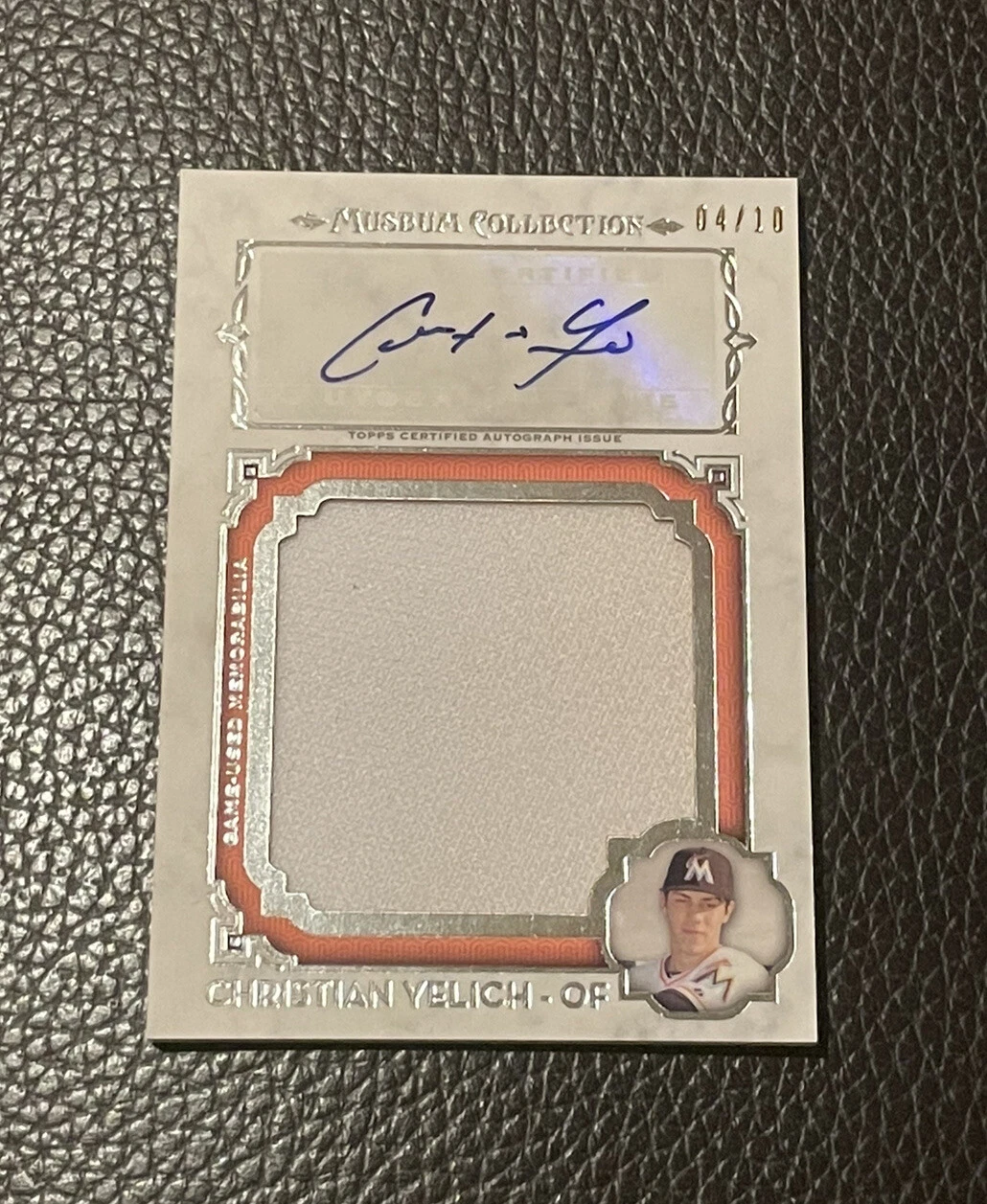 CHRISTIAN YELICH SIGNED 2014 TOPPS MUSEUM COLLECTION PATCH AUTO #04/10 RARE COLLECTIBLE MEMORABILIA