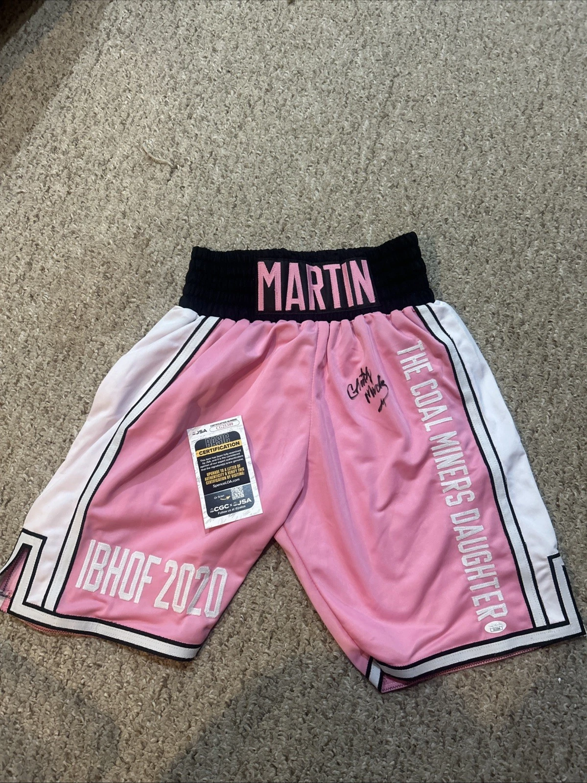 CHRISTY MARTIN SIGNED AUTOGRAPH BOXING TRUNKS JSA COA HOF BOXER CHAMPION COLLECTIBLE MEMORABILIA