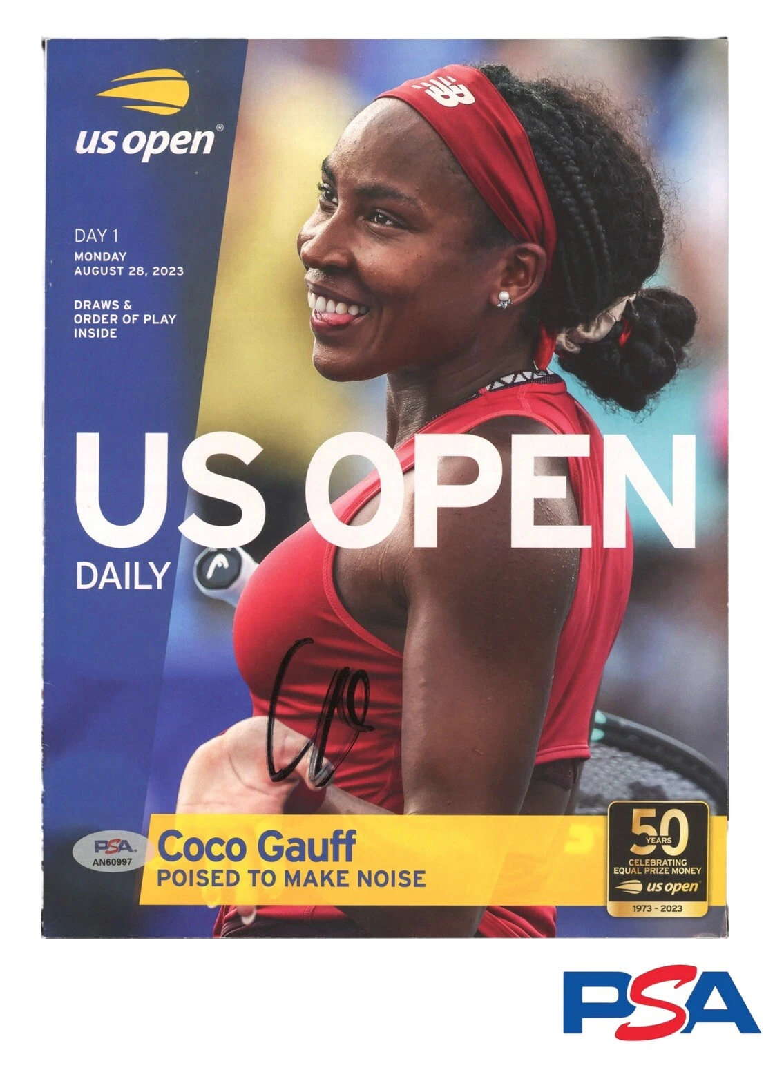 COCO GAUFF SIGNED 2023 US OPEN CHAMPIONSHIPS DAILY PROGRAM PSA/DNA AUTO CHAMPION COLLECTIBLE MEMORABILIA