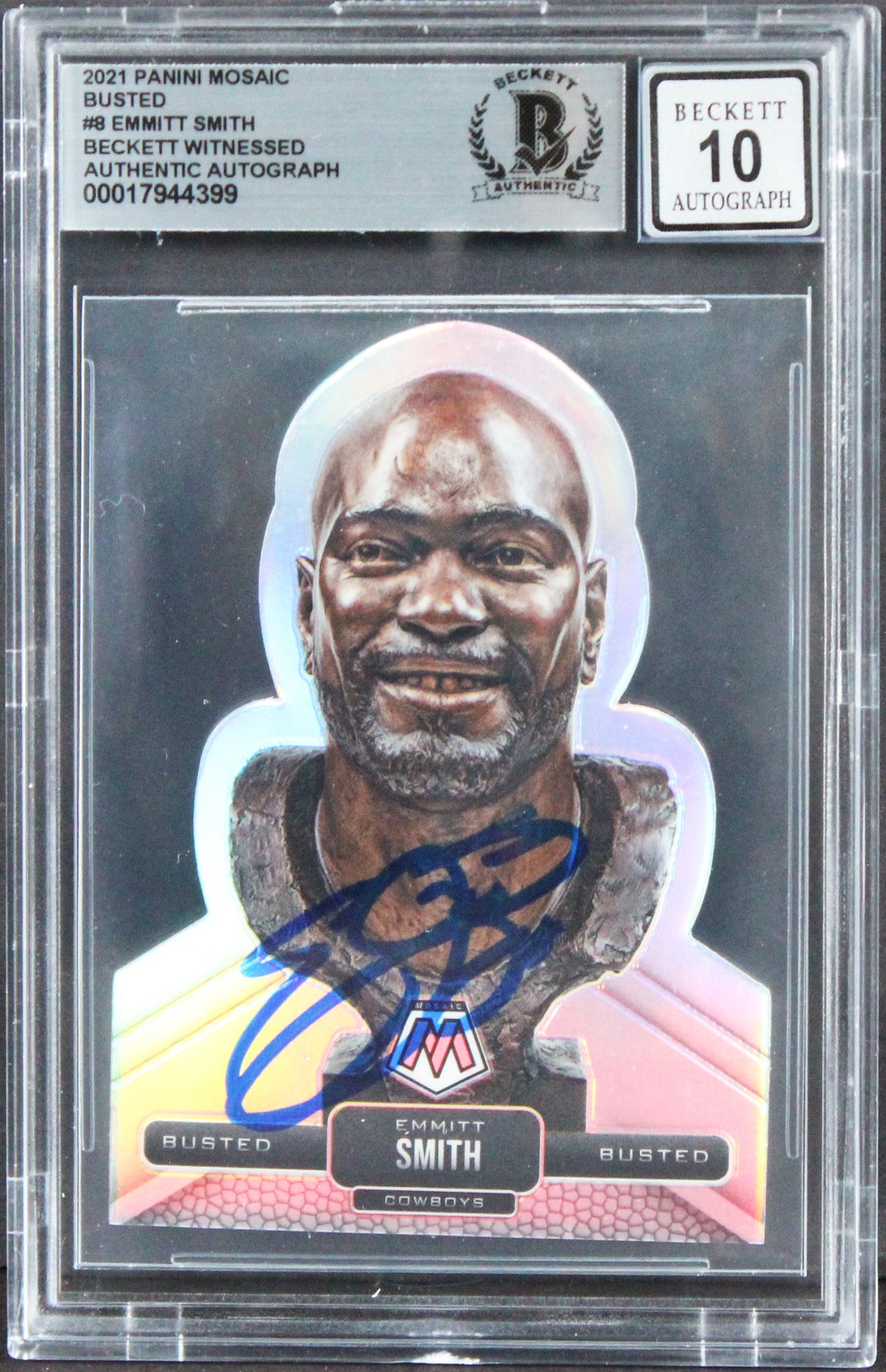 COWBOYS EMMITT SMITH SIGNED 2022 PANINI MOSAIC BUSTED #8 CARD AUTO 10! BAS SLAB COLLECTIBLE MEMORABILIA