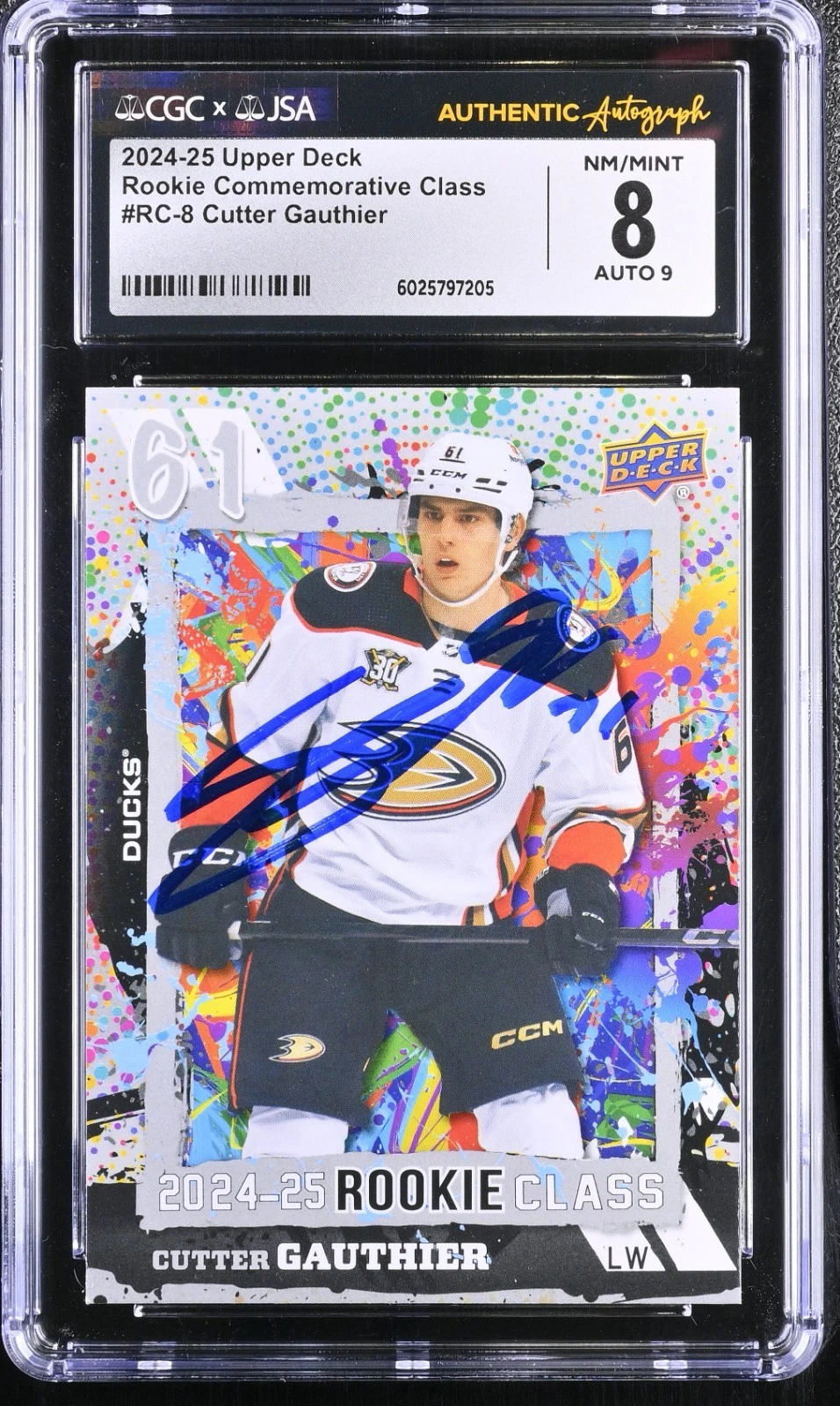 CUTTER GAUTHIER SIGNED 2024-25 UPPER DECK ROOKIE CARD #RC-8 CGC 8 JSA 9 AUTO COLLECTIBLE MEMORABILIA