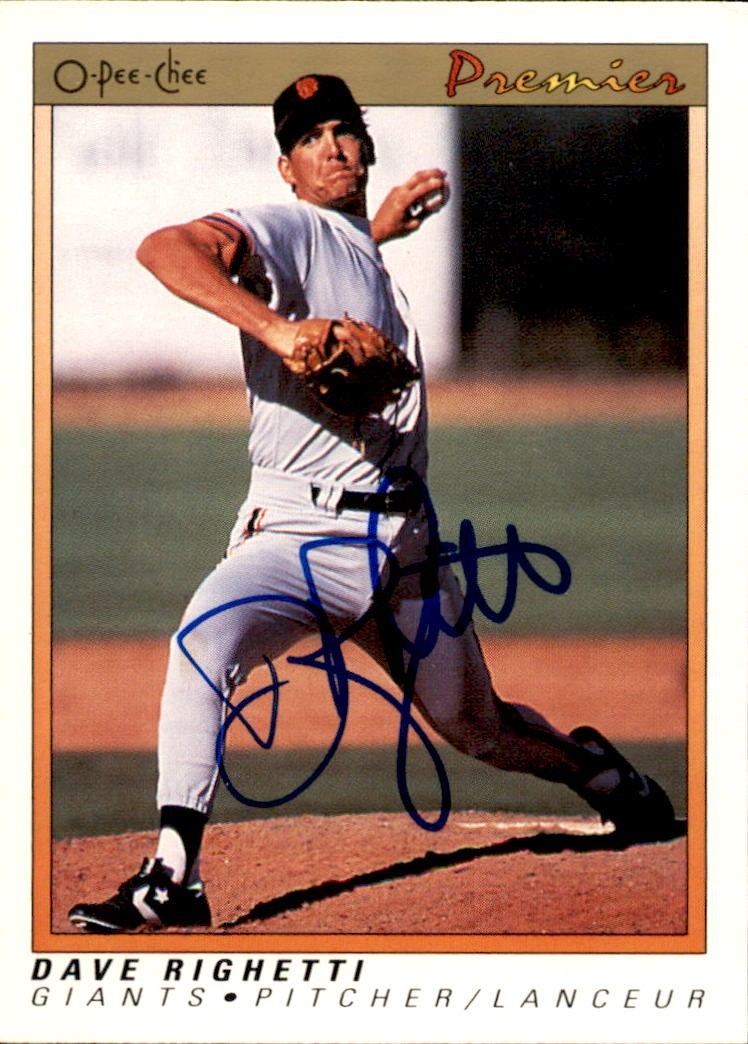 DAVE RIGHETTI SIGNED 1991 O-PEE-CHEE PREMIER CARD #99 SAN FRANCISCO GIANTS COLLECTIBLE MEMORABILIA