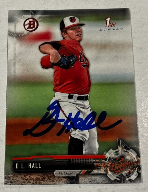 DL HALL SIGNED 2017 BOWMAN DRAFT BASEBALL CARD ROOKIE AUTO COLLECTIBLE MEMORABILIA