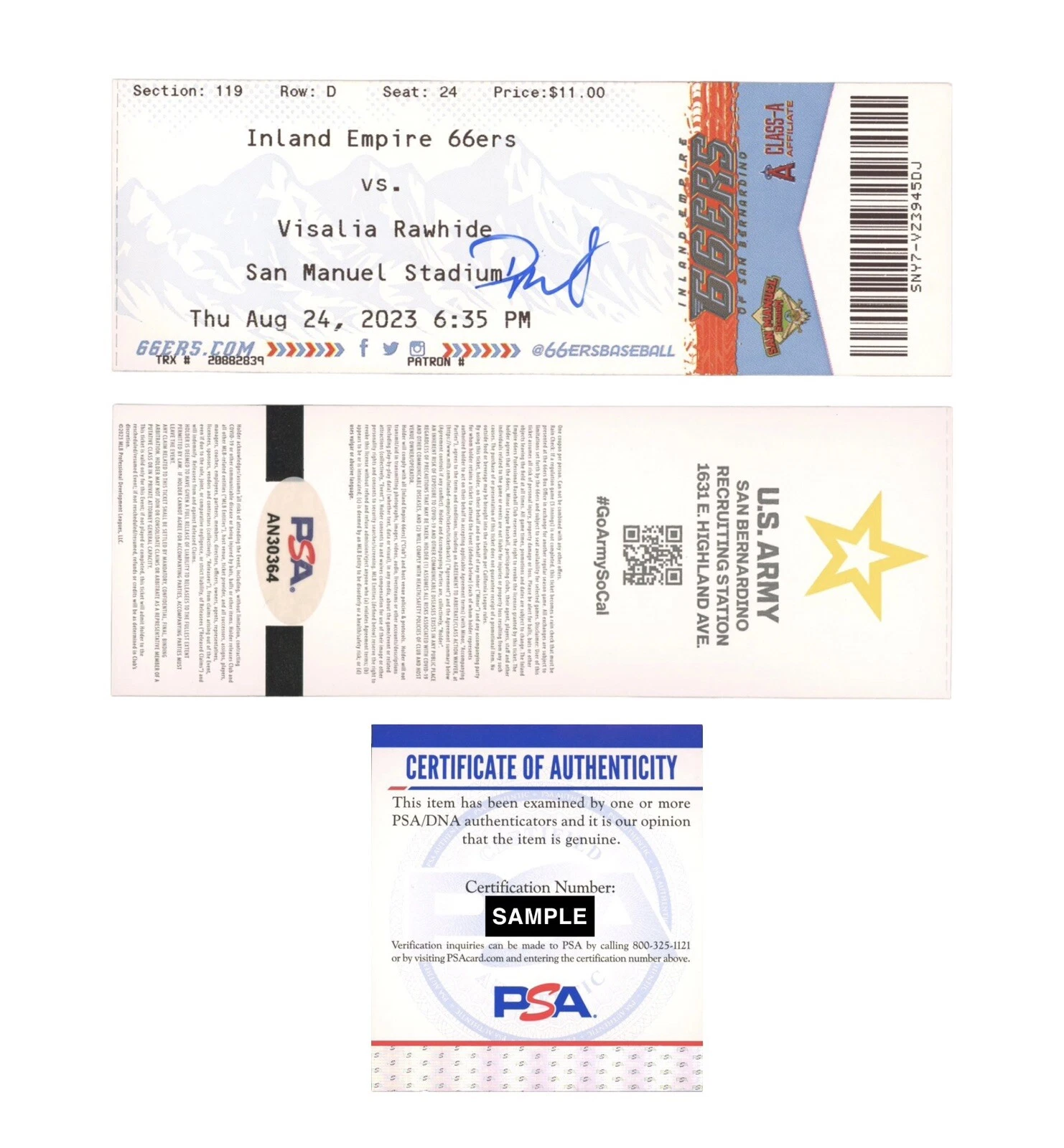 DRUW JONES SIGNED FIRST MILB PROFESSIONAL HOME RUN TICKET STUB 8/24/23 PSA/DNA COLLECTIBLE MEMORABILIA