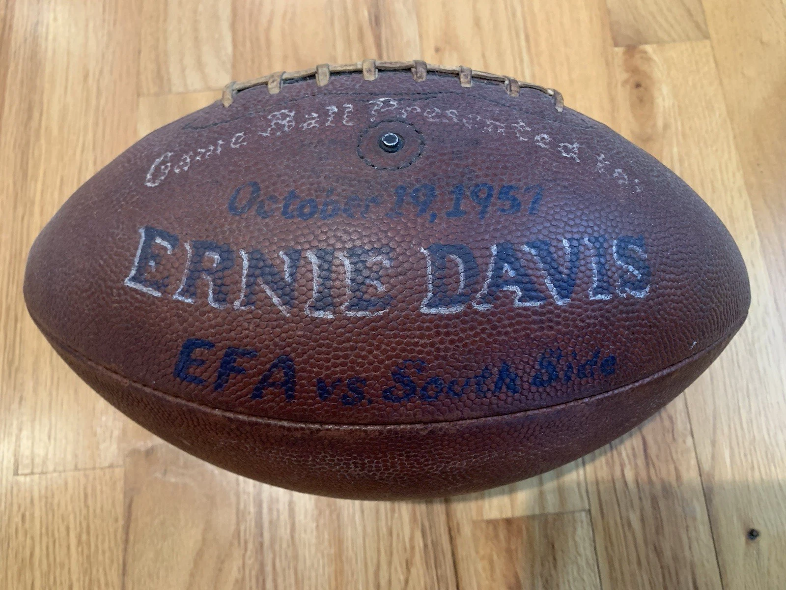 ERNIE DAVIS PERSONALLY OWNED 1956 PAINTED EFA HIGH SCHOOL GAME BALL SYRACUSE COLLECTIBLE MEMORABILIA