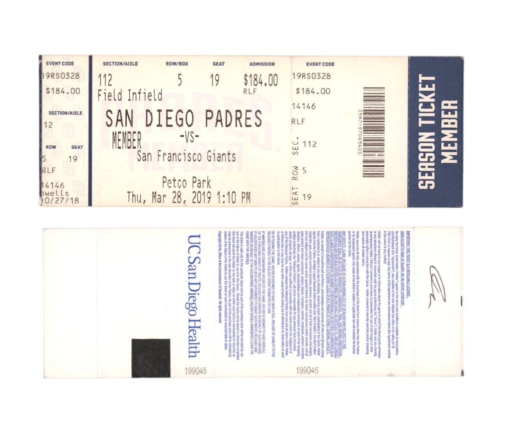 FERNANDO TATIS JR MLB DEBUT + 1ST HIT TICKET STUB SAN DIEGO PADRES 3/28/2019 COLLECTIBLE MEMORABILIA