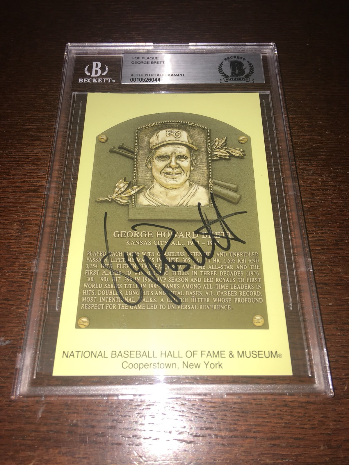GEORGE BRETT SIGNED OFFICIAL BASEBALL HOF PLAQUE POSTCARD BECKETT SLAB ROYALS #2 COLLECTIBLE MEMORABILIA