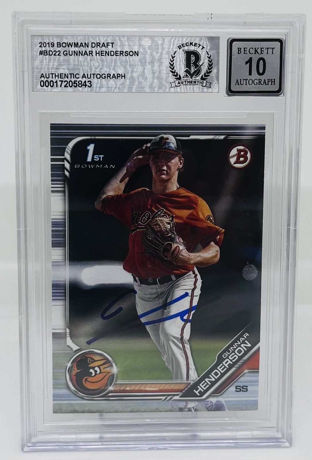 GUNNAR HENDERSON SIGNED 2019 BOWMAN DRAFT ROOKIE CARD BECKETT BAS 10 AUTO COLLECTIBLE MEMORABILIA