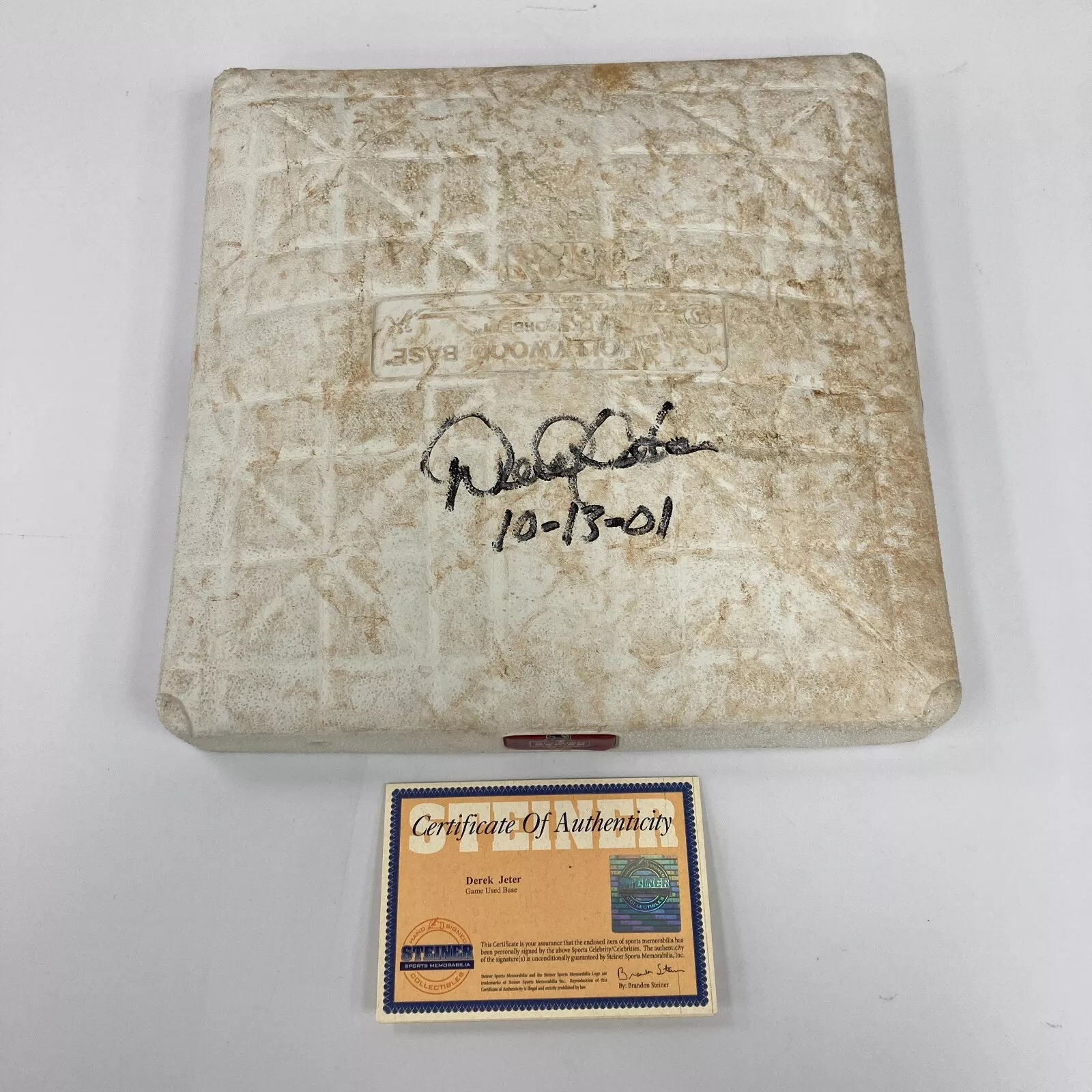 HISTORIC DEREK JETER “THE FLIP PLAY” SIGNED GAME USED BASE MLB AUTHENTIC JSA COA COLLECTIBLE MEMORABILIA
