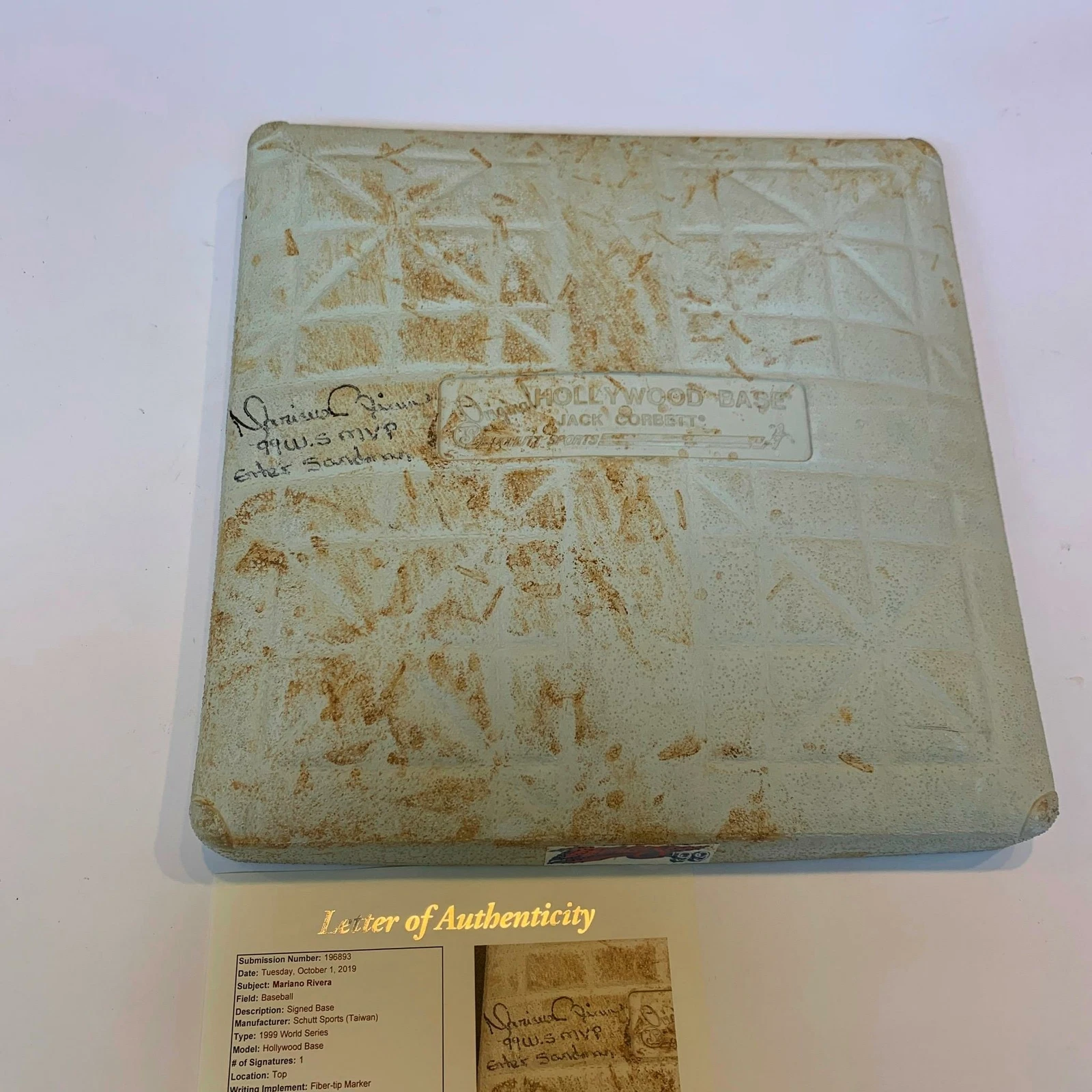 HISTORIC MARIANO RIVERA SIGNED 1999 WORLD SERIES GAME USED BASE GAME 4 JSA PSA COLLECTIBLE MEMORABILIA