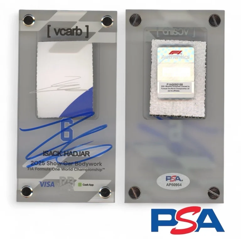 ISACK HADJAR SIGNED 2025 F1 ROOKIE SEASON SHOW CAR BODYWORK PSA AUTO VCARB #6 COLLECTIBLE MEMORABILIA