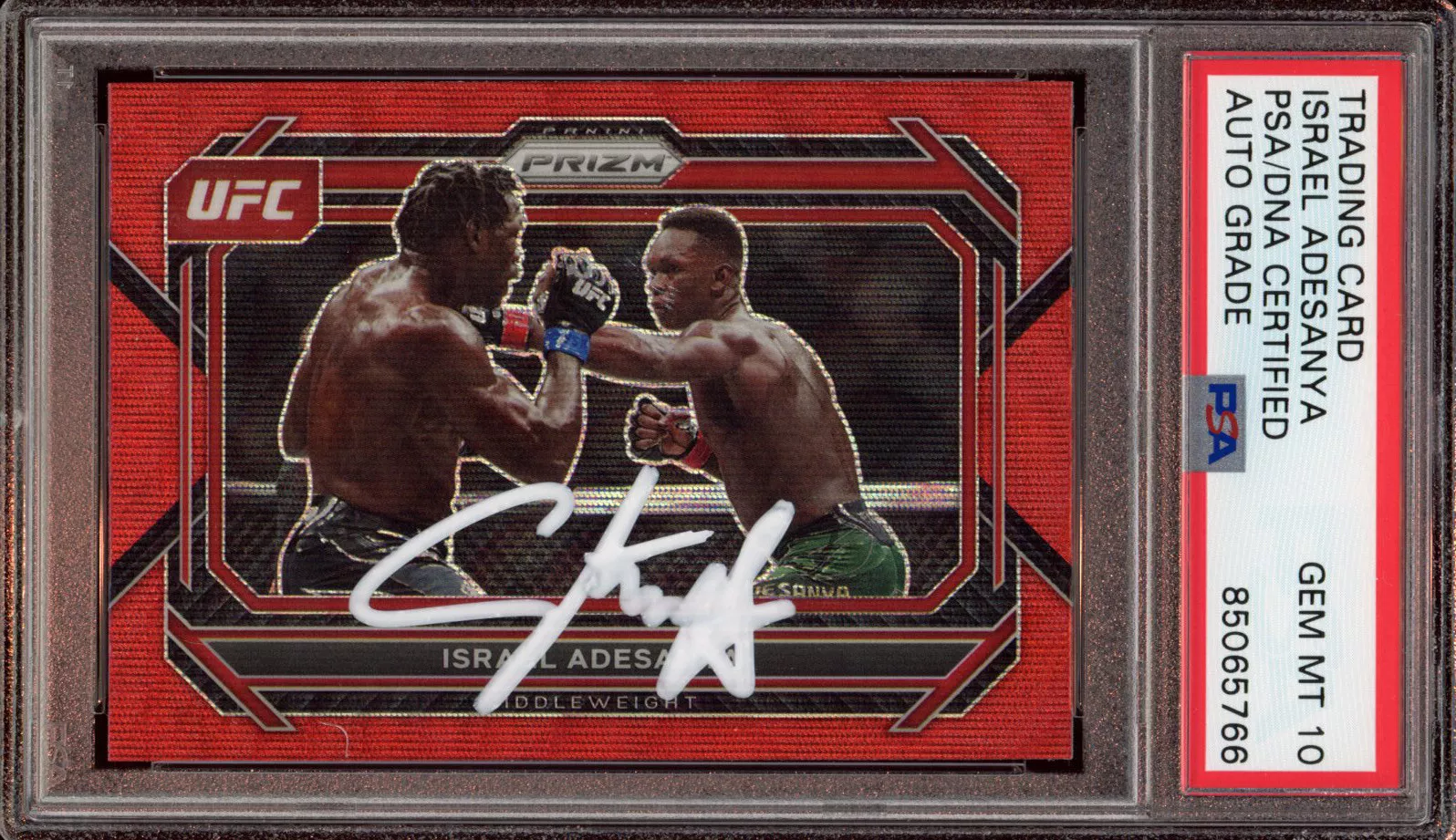 ISRAEL ADESANYA SIGNED 2021 UFC PANINI PRIZM RUBY WAVE CARD #82 PSA GEM 10 AUTO COLLECTIBLE MEMORABILIA