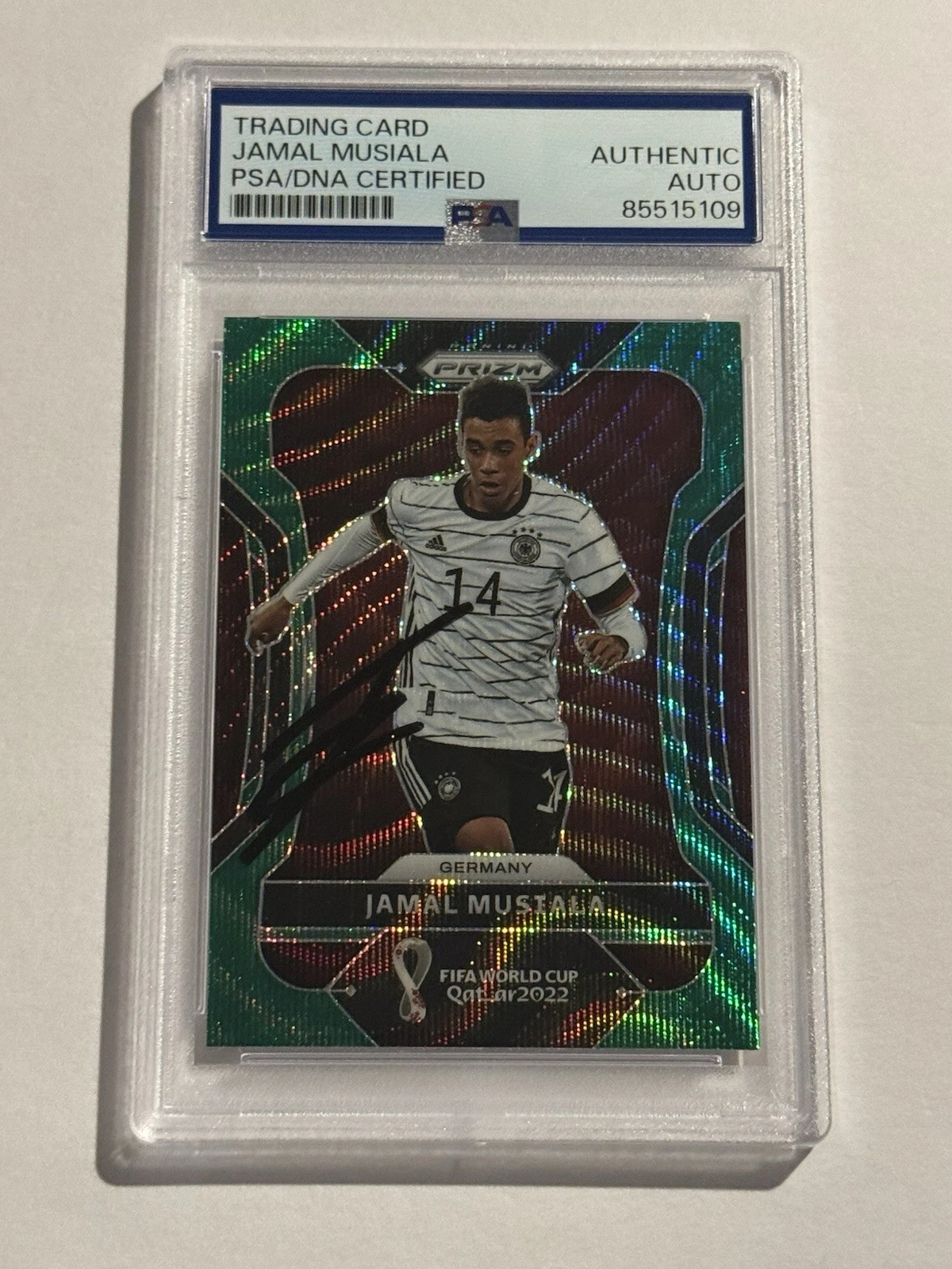 JAMAL MUSIALA SIGNED AUTO RC 2022 PANINI PRIZM WORLD CUP GREEN WAVE PRIZM PSA COLLECTIBLE MEMORABILIA