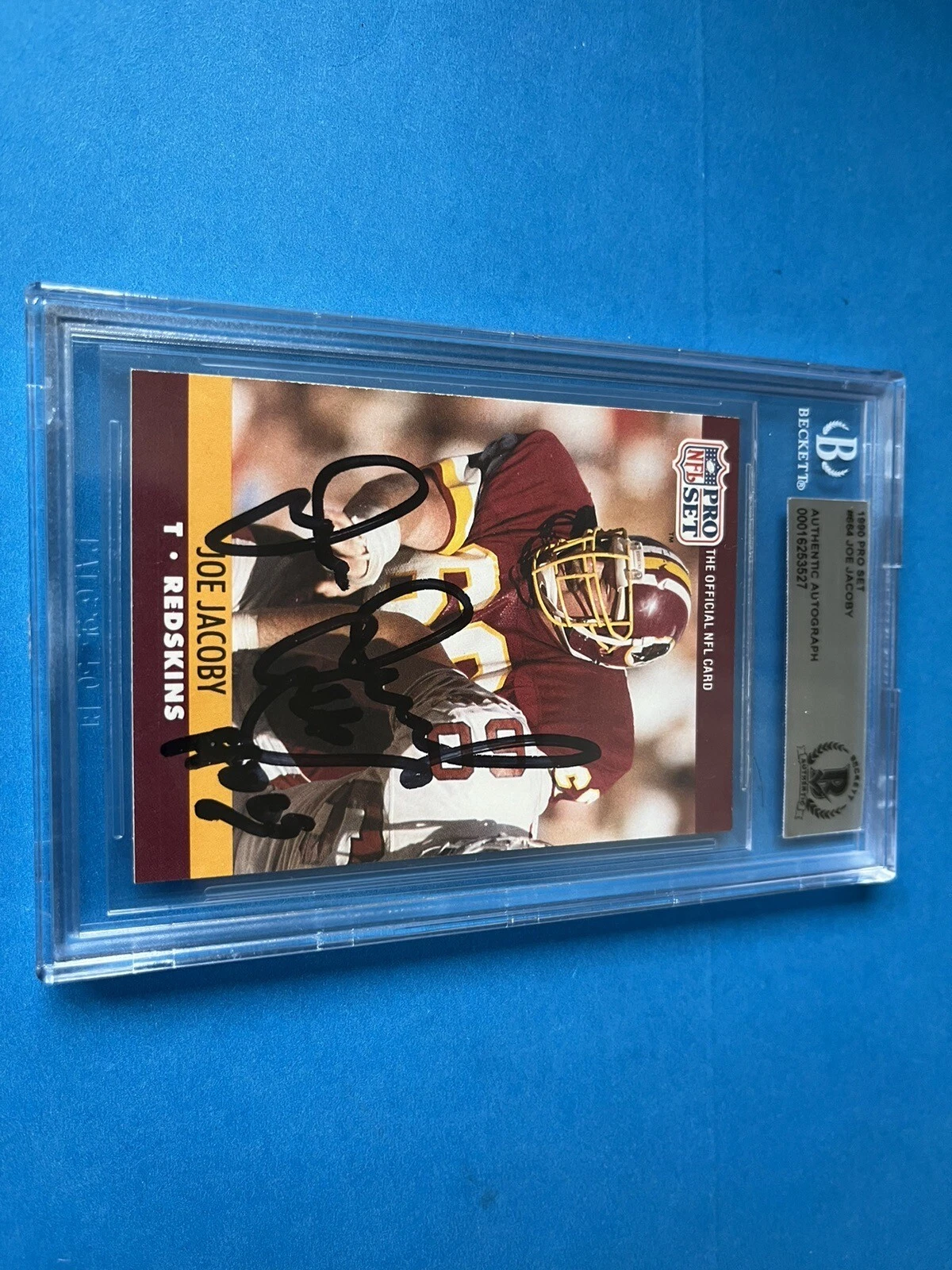 JOE JACOBY REDSKINS HOF SB 1990 PRO SET CARD SIGNED AUTO BECKETT BAS SLABBED COLLECTIBLE MEMORABILIA