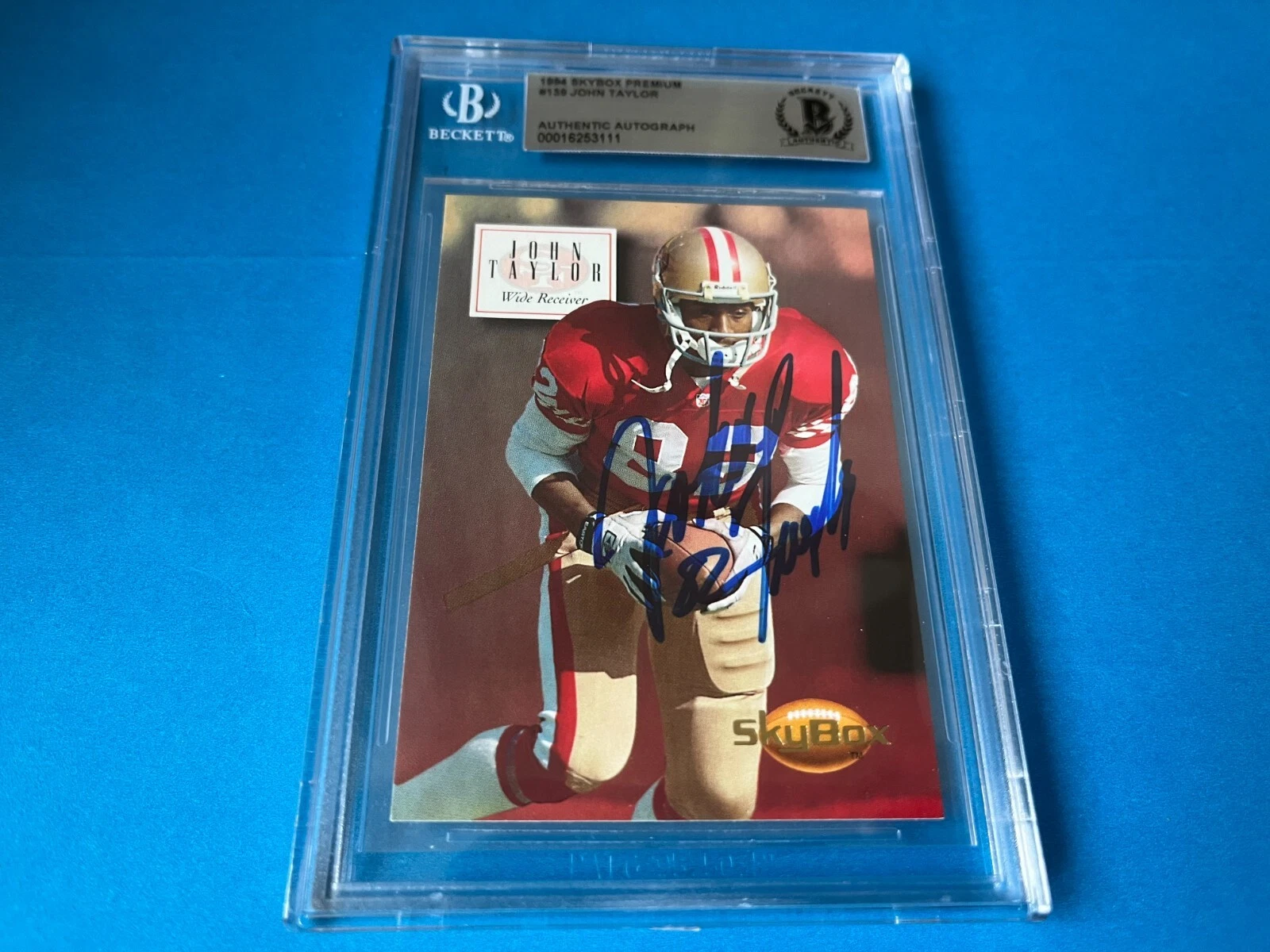 JOHN TAYLOR 49ERS SB 1994 SKYBOX PREMIUM CARD SIGNED AUTO BECKETT BAS SLABBED COLLECTIBLE MEMORABILIA