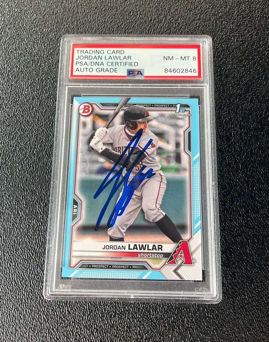 JORDAN LAWLAR SIGNED 2021 BOWMAN DRAFT SKY BLUE /499 CARD #BD-194 PSA/DNA 8 AUTO COLLECTIBLE MEMORABILIA