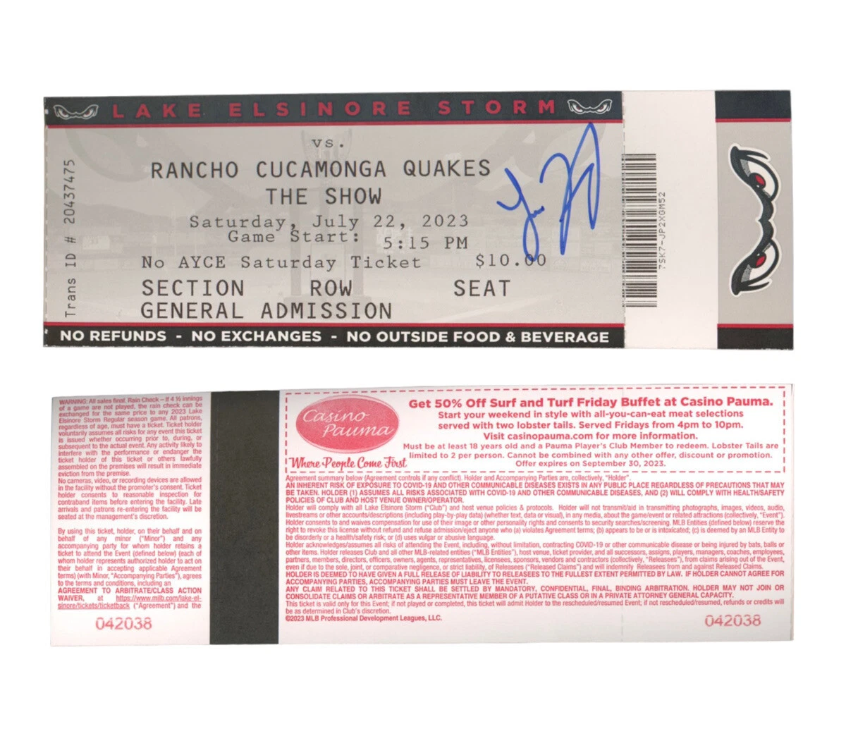 JOSUE DE PAULA SIGNED AUTO TICKET STUB 7/22/23 DODGERS TOP PROSPECT RC QUAKES COLLECTIBLE MEMORABILIA