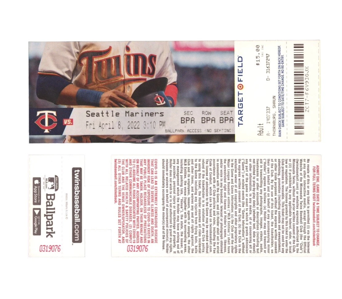 JULIO RODRIGUEZ MLB DEBUT FULL TICKET STUB 4/8/2022 SEATTLE MARINERS ROY COLLECTIBLE MEMORABILIA