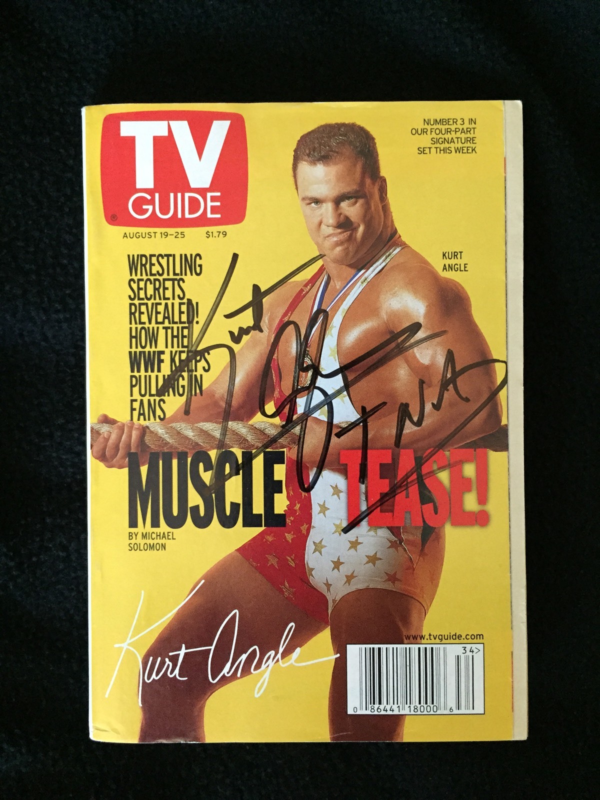 KURT ANGLE SIGNED WWE MUSCLE TEASE TV GUIDE COLLECTIBLE MEMORABILIA