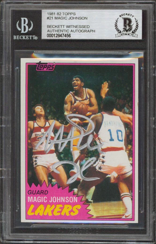 LAKERS MAGIC JOHNSON AUTHENTIC SIGNED 1981 TOPPS #21 CARD BAS SLABBED #12847456 COLLECTIBLE MEMORABILIA