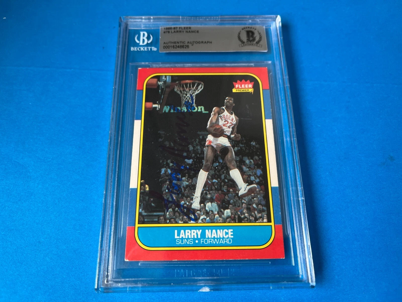 LARRY NANCE HOF 1986 NBA FLEER CARD SIGNED AUTO BECKETT BAS SLABBED COLLECTIBLE MEMORABILIA