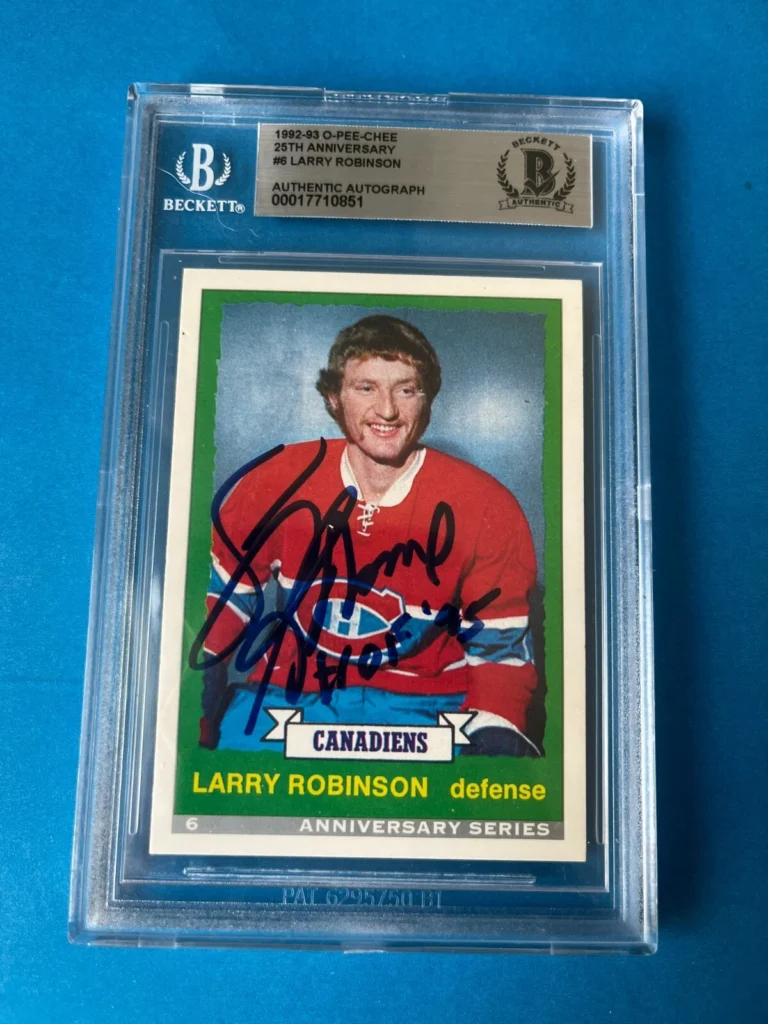 LARRY ROBINSON 1992-93 O-PEE-CHEE CARD SIGNED AUTO BECKETT SLABBED BAS COLLECTIBLE MEMORABILIA