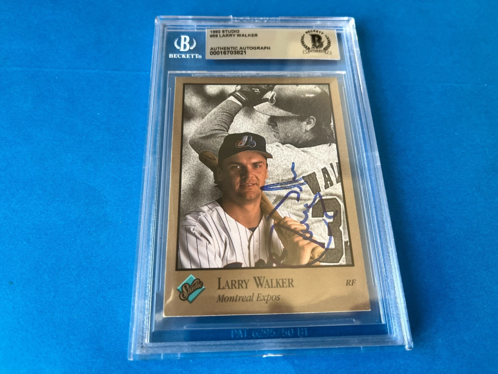 LARRY WALKER HOF MLB 1992 LEAF STUDIO CARD SIGNED AUTO BECKETT BAS COA COLLECTIBLE MEMORABILIA