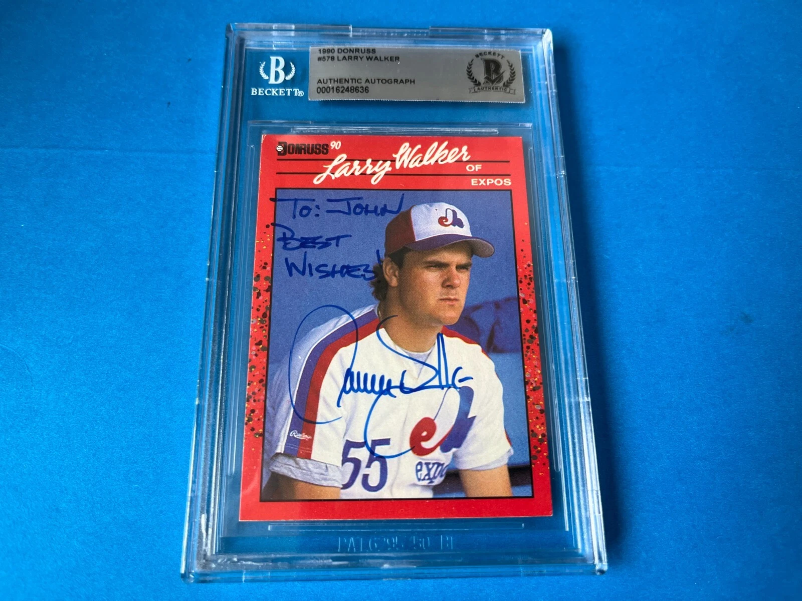 LARRY WALKER ROCKIES HOF 1990 DONRUSS CARD SIGNED AUTO BECKETT BAS SLABBED COLLECTIBLE MEMORABILIA