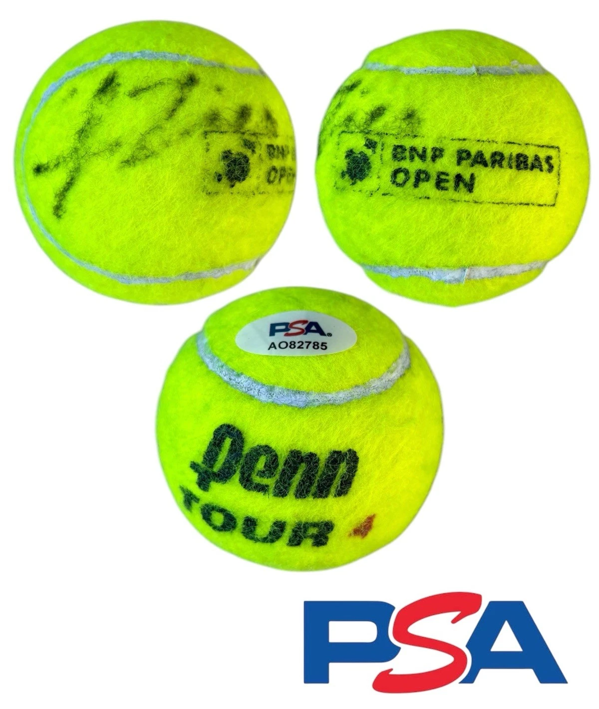 LEARNER TIEN SIGNED 2025 INDIAN WELLS MATCH USED TENNIS BALL PSA/DNA AUTO ATP COLLECTIBLE MEMORABILIA