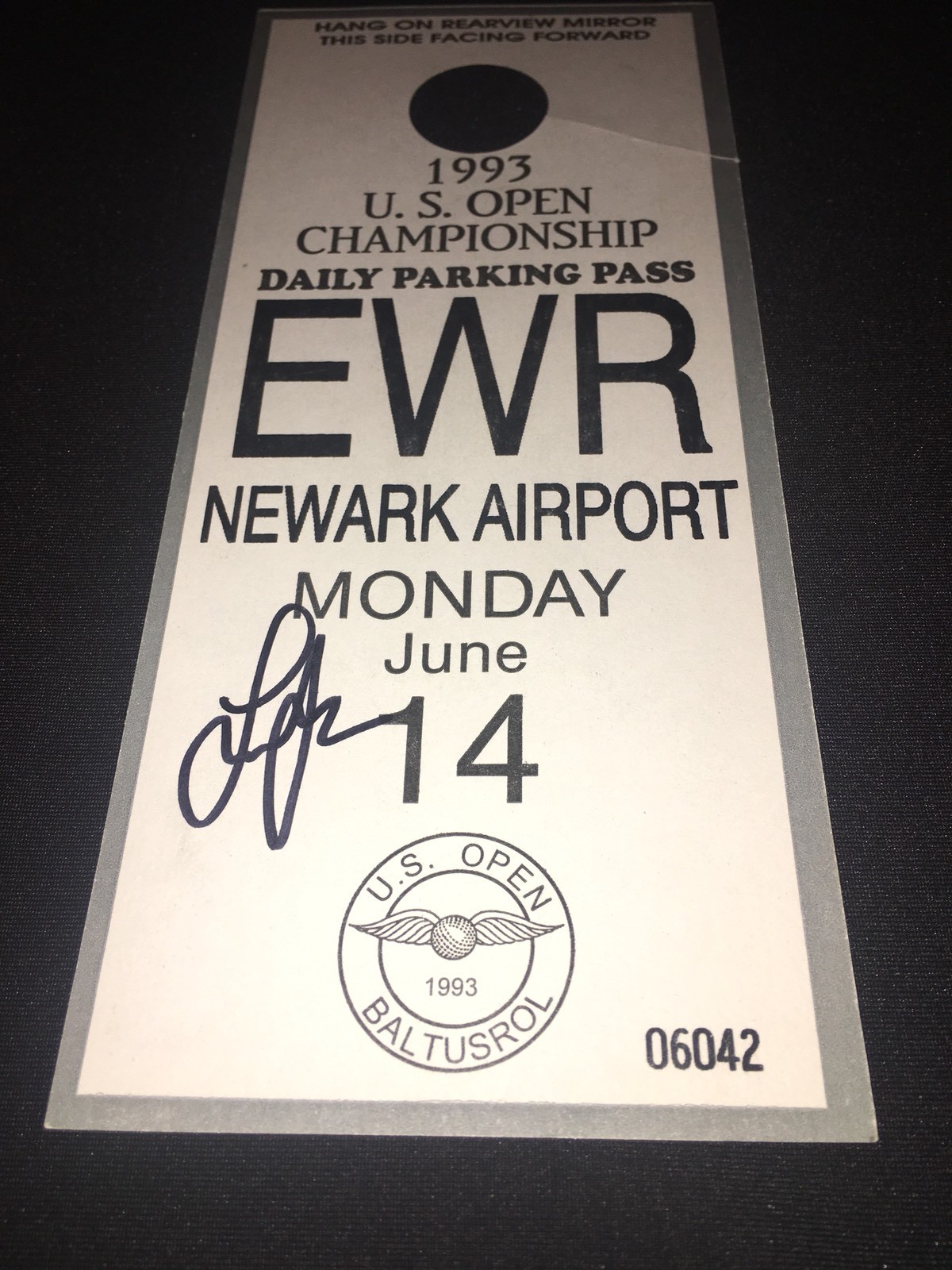 LEE JANZEN SIGNED OFFICIAL 1993 OFFICIAL US OPEN PARKING PASS WINNER COA COLLECTIBLE MEMORABILIA