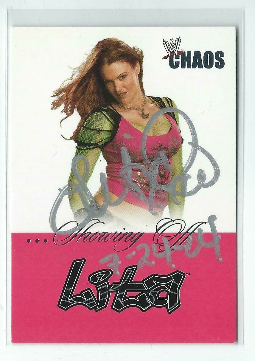 LITA SIGNED 2004 FLEER WWE CHAOS SHOWING OFF CARD #1 COLLECTIBLE MEMORABILIA