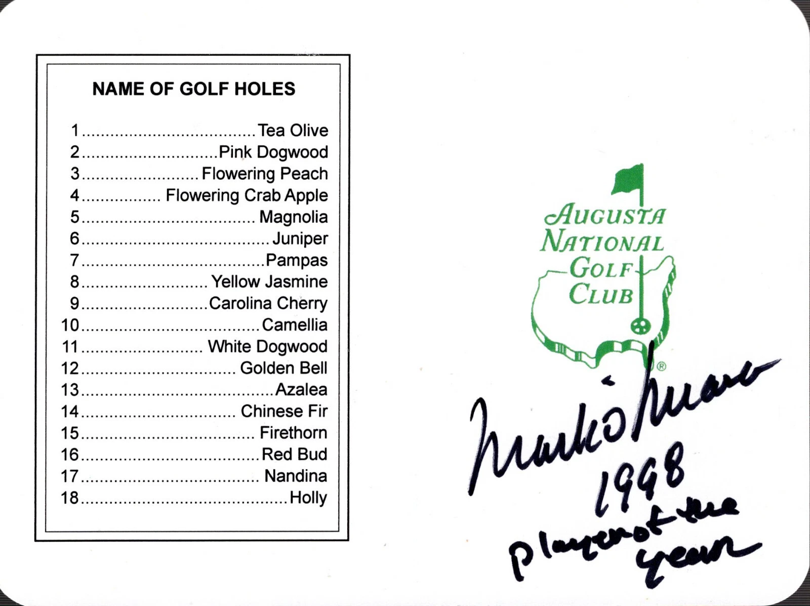 MARK O’MEARA HAND SIGNED UNUSED MASTERS SCORECARD+COA 1998 MASTERS CHAMPION COLLECTIBLE MEMORABILIA